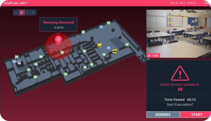 Intelevac: Active shooting is our smart AIoT safety solution that guides people to the nearest safe exit in the event of an indoor active shooter incident
